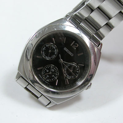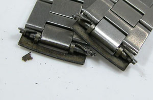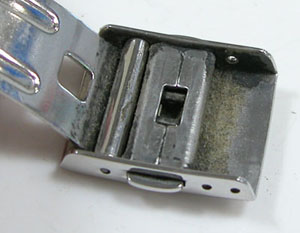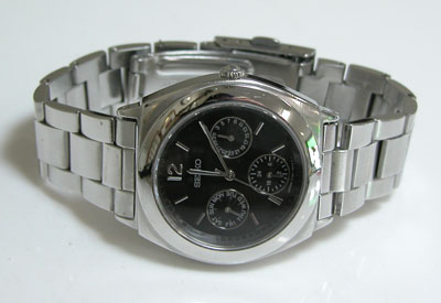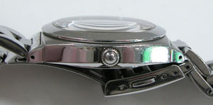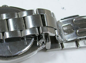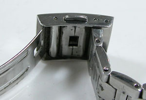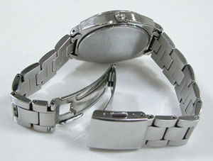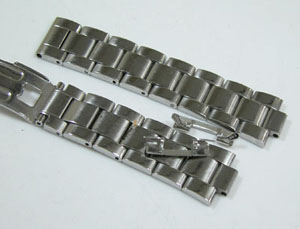 ステンレス無垢バンドに三つ折れプッシュバックル。