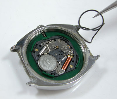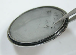 綺麗になったケースにムーブメントを戻して電池格納部をチェックします。
