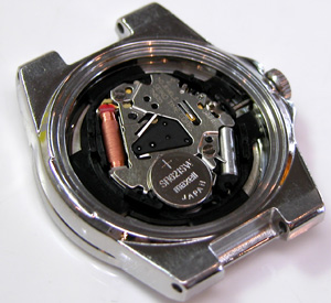 綺麗になったケースにムーブメントを戻して電池格納部をチェックします。