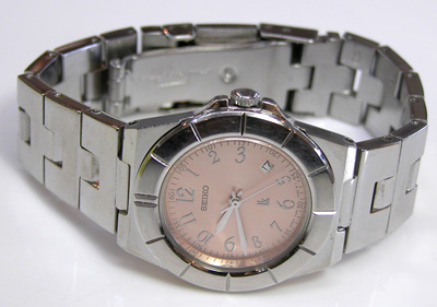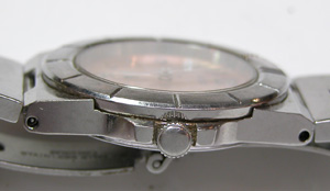 ルキア独特の横顔ですね。ステンレス無垢バンドに三つ折れプッシュバックル。