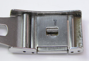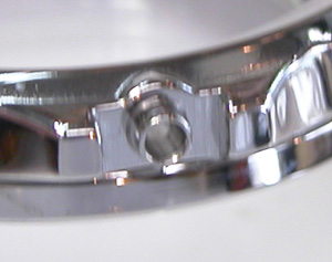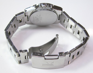 ステンレス無垢バンドにルキア独特の三つ折れプッシュバックル。