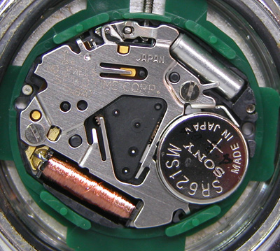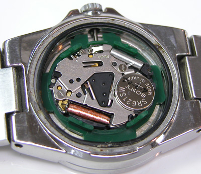 綺麗になったケースにムーブメントを戻して電池格納部をチェックします。
