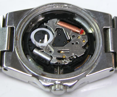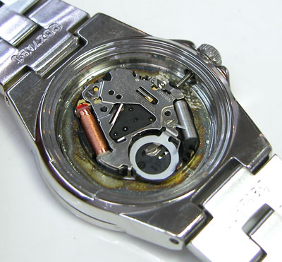 綺麗になったケースにムーブメントを戻して電池格納部をチェックします。