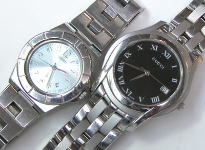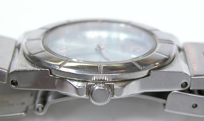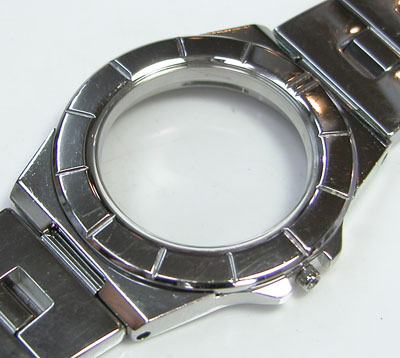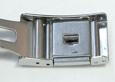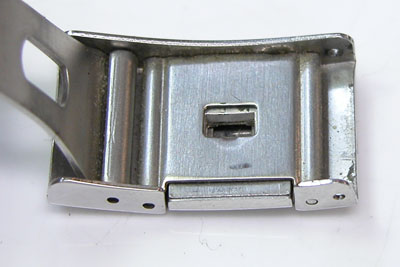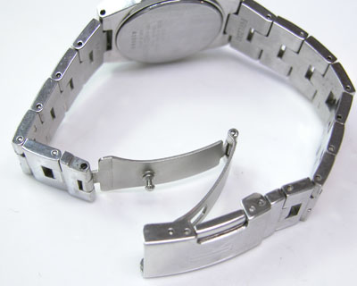 ステンレス無垢バンドに三つ折れプッシュバックル。