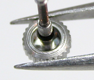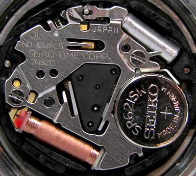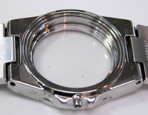 綺麗になったケースにムーブメントをもどして電池格納部をチェックします。