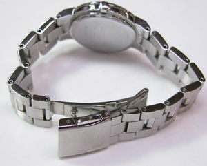 カーブガラスが綺麗ですね。ステンレス無垢バンドに三つ折れプッシュバックル。
