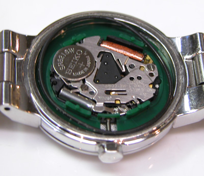 綺麗になったケースにムーブメントを戻して電池格納部をチェックします。