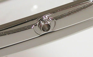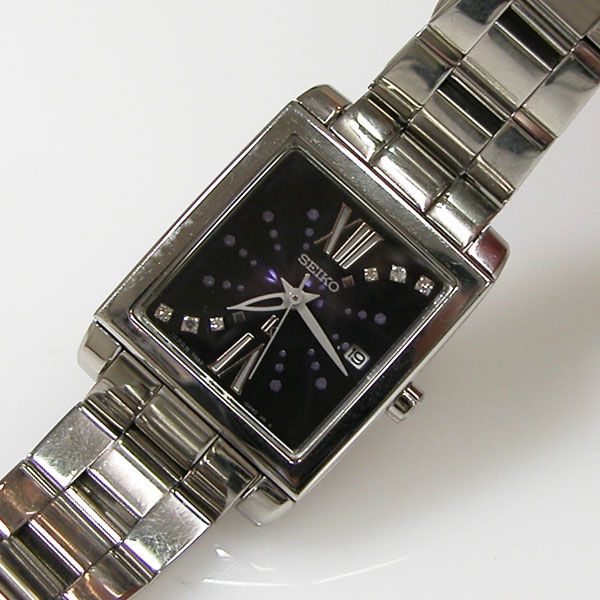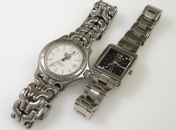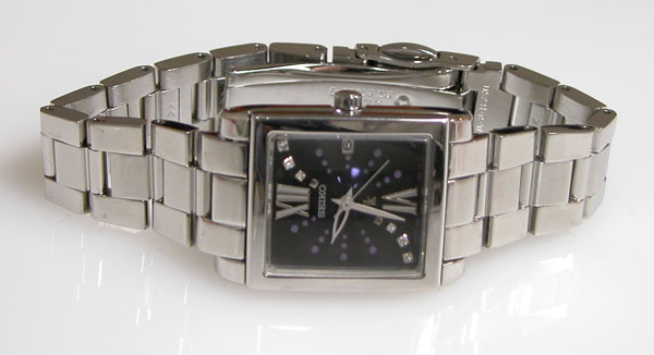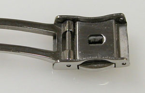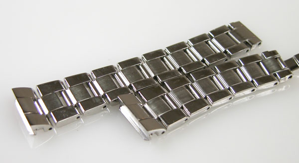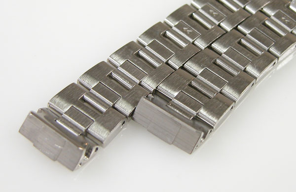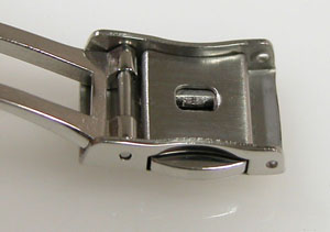 ステンレス無垢バンドに三つ折れプッシュバックル。