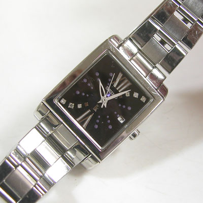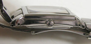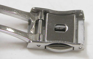 ステンレス無垢バンドに三つ折れプッシュバックル。