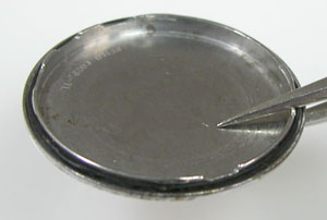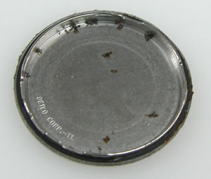 裏蓋は”はめ込みタイプ”で裏蓋記載。裏蓋の裏側もチェックしますが”錆び”。