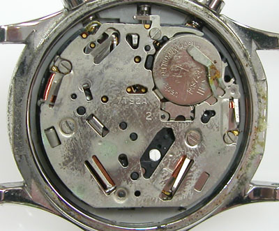 ムーブメントは湿気で真っ白。もう完全に湿気は抜けて乾いてはおります。