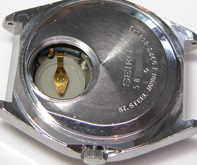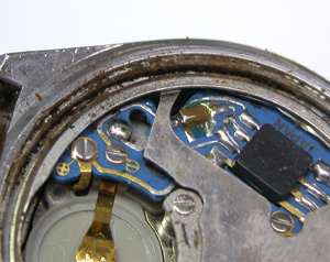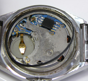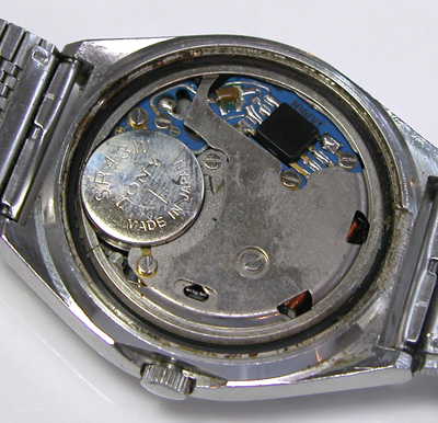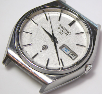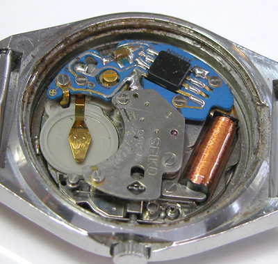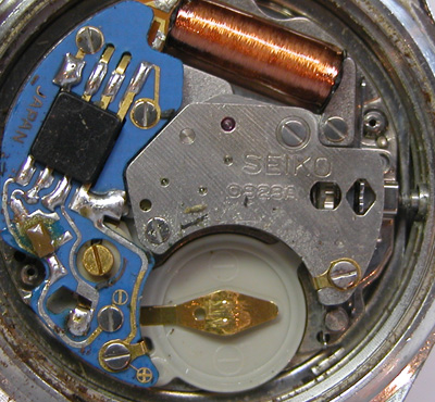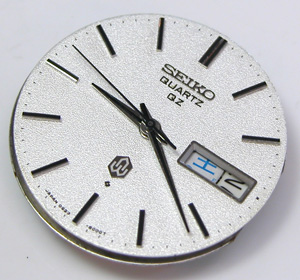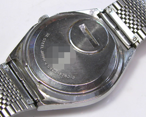 これだけのパーツが組み込まれている訳で、当時のクォーツの重厚さが伝わってきます。つまりはまだ、クォーツが高価だった証なんですね・・。
