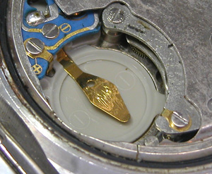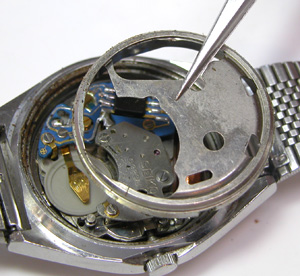 竜頭パイプもチェックして。これが取り出した文字盤&ムーブメント。