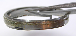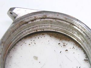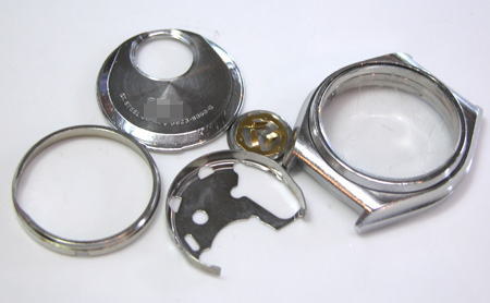 一部が錆び付いたケースに、こびりついています。パッキンはそぎ落として除去。