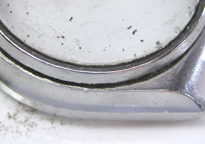 ガラスとベゼル。ベゼルとケースの隙間も汚れでビッシリ。