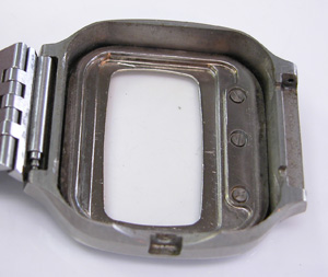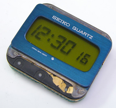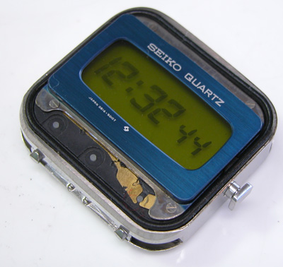 こちらがワンピースケースの内側。これが取り出した文字盤 液晶&ムーブメント。