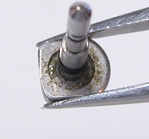 裏蓋は”はめ込みタイプ”で右が裏蓋記載。この当時のチタンの値段って今と比べてどうだったのか?また、今やチタンの裏蓋の文字は鮮明ですが、この当時は堅いチタンに文字を鮮明に書く技術が無かったのですね・・・。