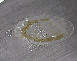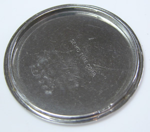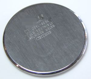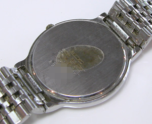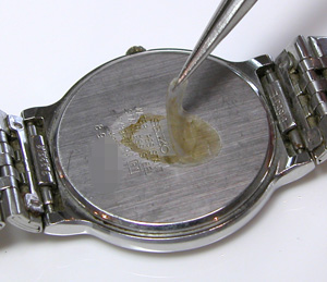 裏蓋は”はめ込みタイプ”シールと裏蓋表面の間に汗が入って腐食が始まっていますから剥がしておきましょう。
