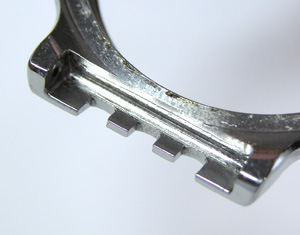 裏蓋のシールを剥がしましたのでアルコールで拭きます。ラグ部のチェック。