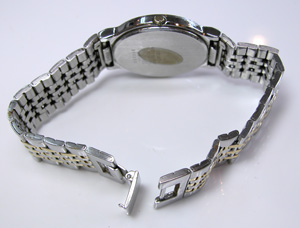 竜頭が動かないという事です。表面のメッキが腐食しています。これ触ってみれば問題なく竜頭操作はできました。板巻きステンレスバンド、二つ折れバックル。