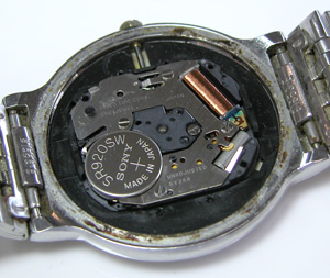 ムーブメントを戻して電池交換。パッキンを入れて。