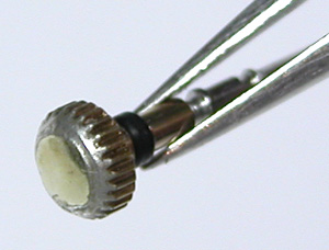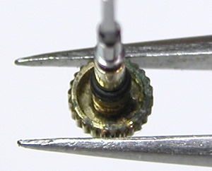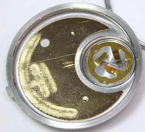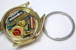 竜頭の裏側もチェックします。これが取り出した文字盤&ムーブメント。