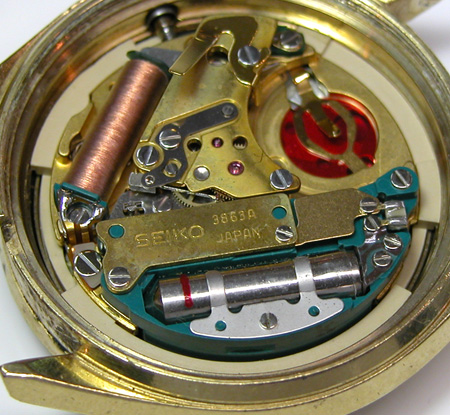 これがキャリバー。我々”38(サンパチ)クォーツ”と呼ぶキャリバー。