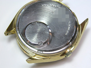 この頃のクォーツ独特のぼってりした雰囲気は良いですね・・。裏蓋と電池蓋が別になっています。