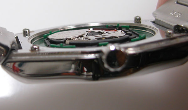 綺麗になったケースにムーブメントを戻して電池格納部をチェックします。