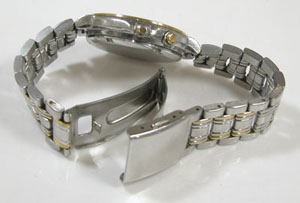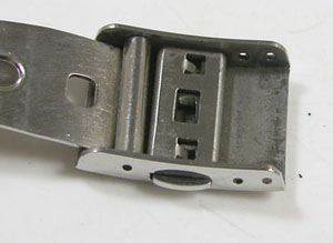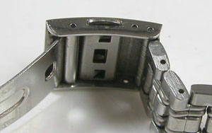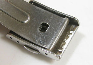 ステンレス板巻きバンドに三つ折れバックルですが、かなり伸びておりますのは板巻きの特徴。