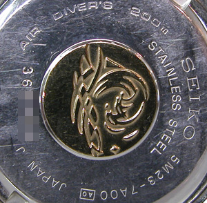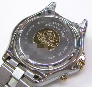 裏蓋はスクリューバックで右が裏蓋記載。