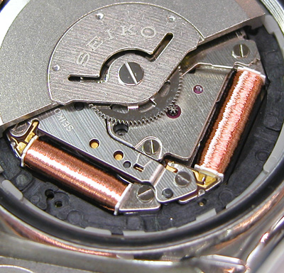 大きなコイルが2つ見えますが電波時計ではありません。