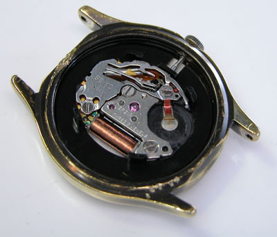 綺麗になったケースにムーブメントを戻して電池格納部をチェックします。