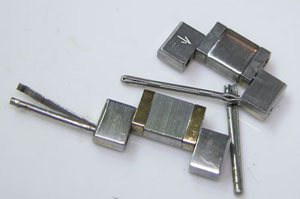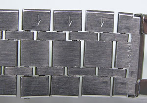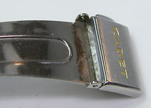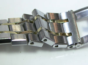 ステンレス無垢バンドに三つ折れプッシュバックル。