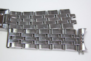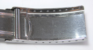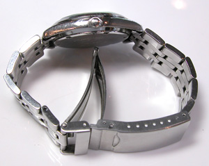 ステンレス無垢バンドに三つ折れダブルロック。