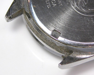 綺麗になったケースにムーブメントをもどして電池格納部をチェックします。