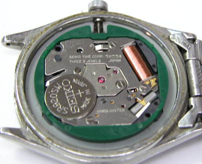 綺麗になったケースにムーブメントを戻して電池格納部をチェックします。