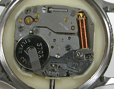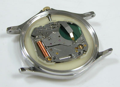 綺麗になったケースにムーブメントを戻して電池格納部をチェックします。