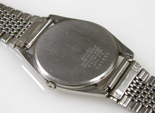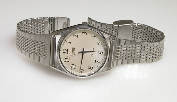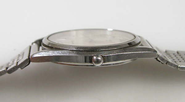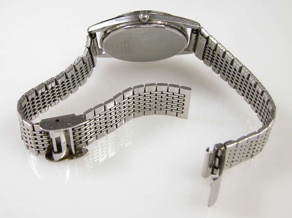ステンレス無垢バンドですが薄型のスライドバックルはオールド・クォーツならでは。