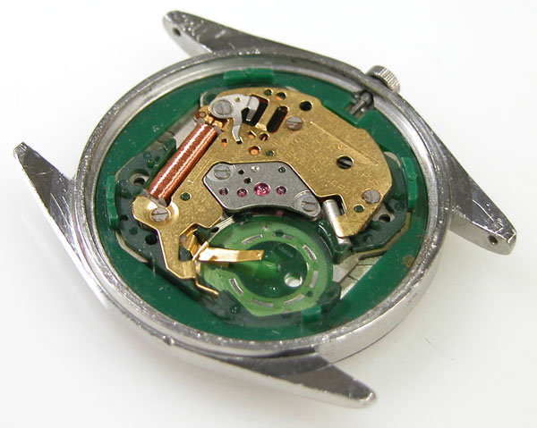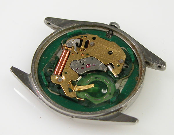ムーブメント拡大。プラスチックパッキンがケース側に残ります。