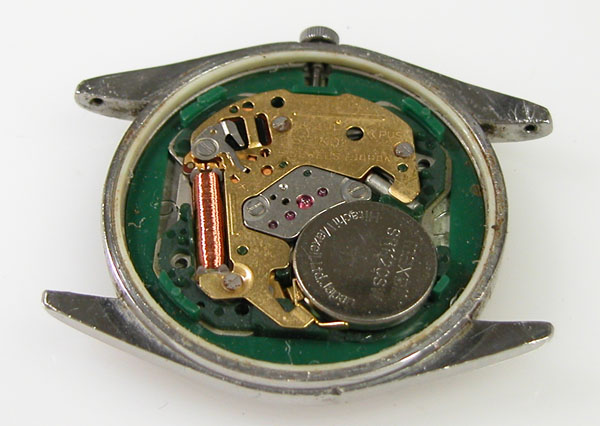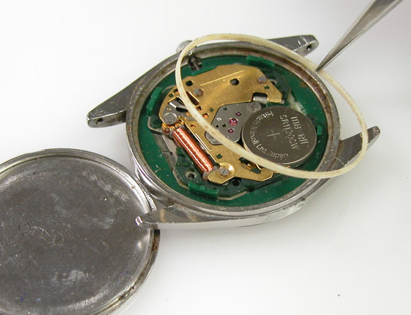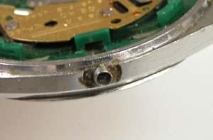 綺麗になったケースにムーブメントを戻して電池格納部をチェックします。