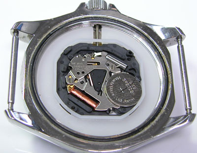 綺麗になったケースにムーブメントを戻して電池格納部をチェックします。