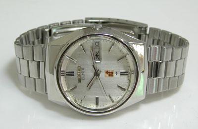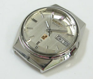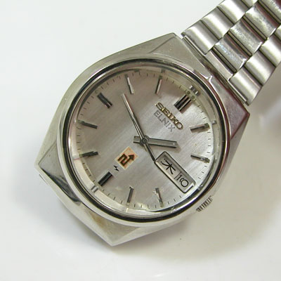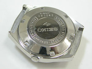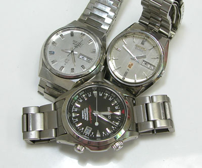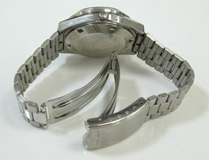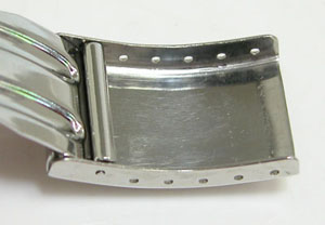 ステンレス板巻きバンドに三つ折れバックル。これはオリジナルバンドですね。