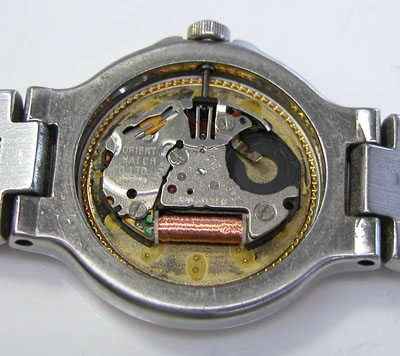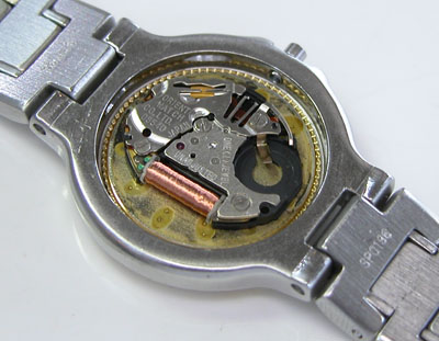 綺麗になったケースにムーブメントを戻して電池格納部をチェックします。