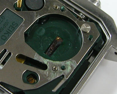 綺麗になったケースにムーブメントを戻して電池格納部をチェックします。