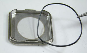 弓環の汚れもチェックします。パッキンを外して汚れを拭き取ります。