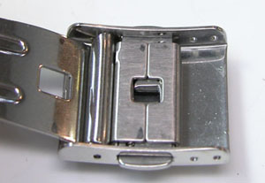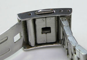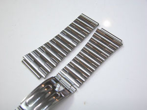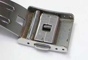 ステンレス板巻きバンドに三つ折れバックル。