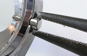 押し込まれたままのプッシュボタンを抜きますが力ずく。ヤットコくらいではテコでも動かずラジペンで強引に引き抜きます。