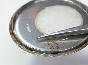開け口は・・・!!凄いサビ。裏蓋の裏側もチェックして。