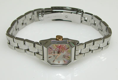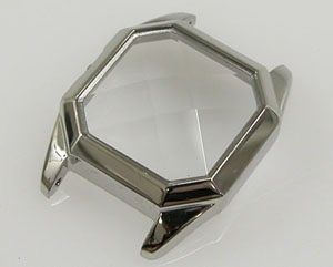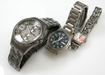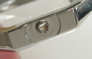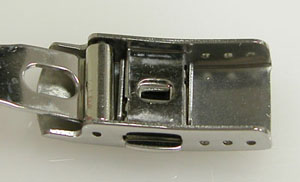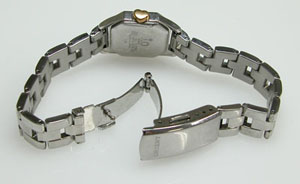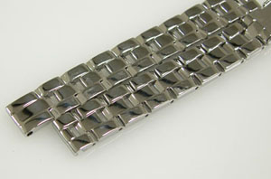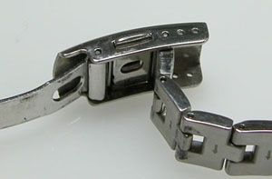 ステンレス無垢バンドに三つ折れプッシュバックル。